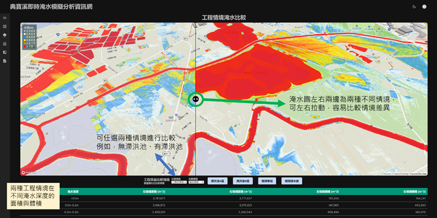 圖說:平台提供典寶溪即時淹水模擬分析,讓民眾更加了解水利建設的效益。