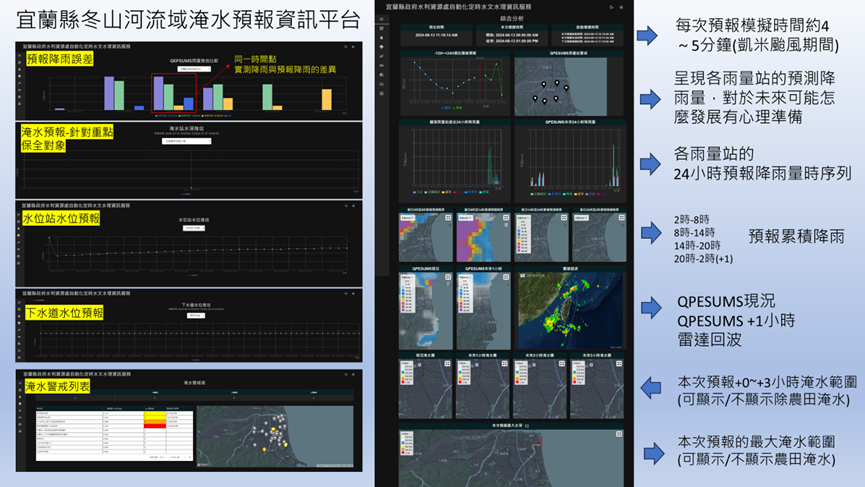 許永佳指出,「藉由高精度淹水模型和作業化高精度淹水預報,可以24小時蒐集並監測天候資料,無論是汛期、梅雨季、鋒面或颱風來襲,都能掌握未來3小時的最新即時資訊,能幫助決策者提前爭取應變時間,提前部署。」透過數據資料整合與分析,全方位提升了宜蘭縣的防災能力。