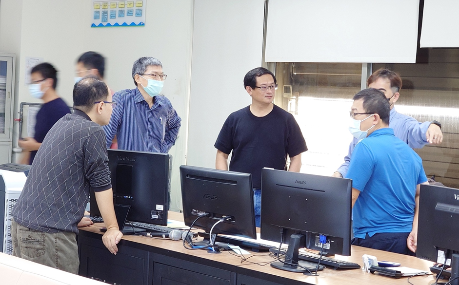 圖說:臥龍智慧環境的謝文彬博士(右3),與水場團隊討論智慧加藥解決方案